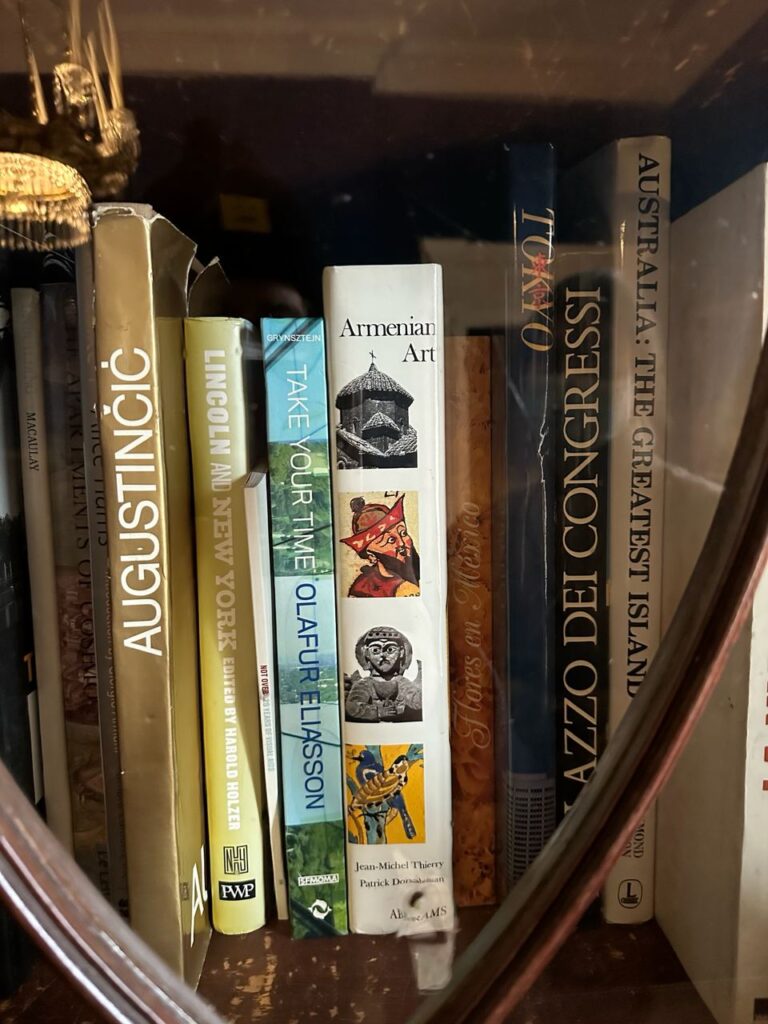 What stands out most is the art collection, curated over generations — a cultural snapshot of New York through centuries. Among the surprises: a book on Armenian Art, tucked between classic political volumes.