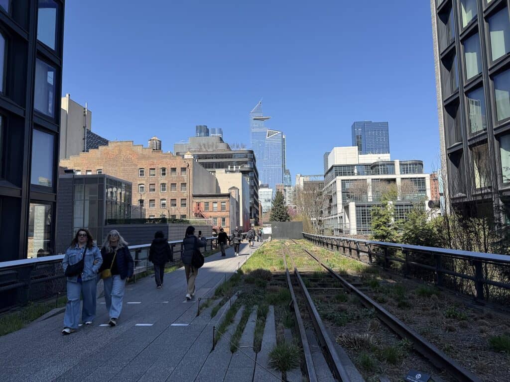 Today, people come here to walk, take photos, and eat ice cream with views of the Hudson River. You can also unexpectedly come across contemporary art installations. Entry to the High Line is free, it’s open almost year-round, and it’s arguably the best free walking route in New York City.