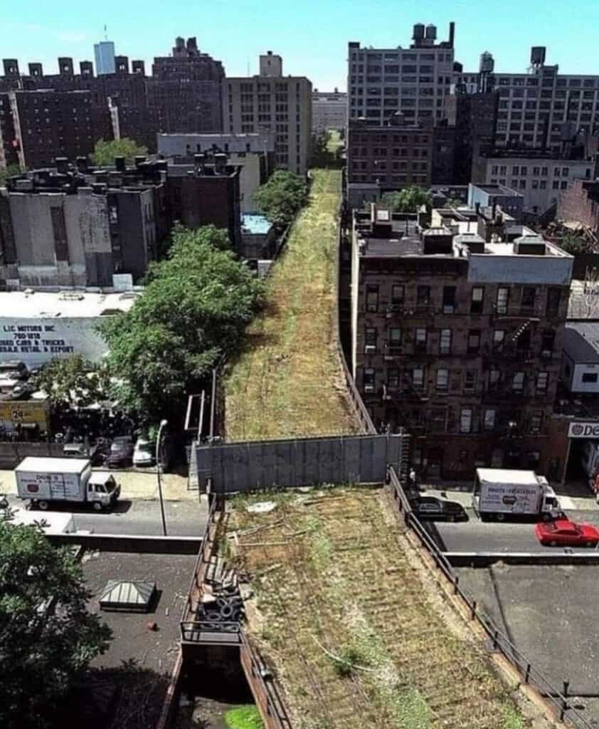 By the 1960s, however, trucks had replaced trains. The last train ran in 1980, carrying turkeys for Christmas. For the next twenty years, the elevated structure was abandoned, and nature took over. Trees and grasses grew over the tracks, inspiring the future park’s designers.