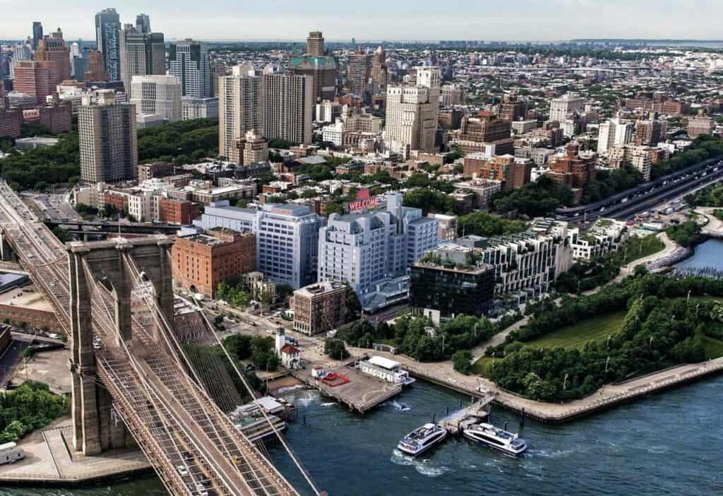 The sign became one of the most recognizable elements of the Brooklyn skyline — it was visible from the Brooklyn Bridge and from Manhattan. Today, a more modest WELCOME sign is displayed instead. At their peak, they owned more than 37 properties across Brooklyn Heights and DUMBO.