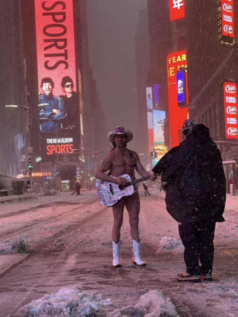 Times Square is a place where everything feels a little unreal — but if you find yourself there and see a man in briefs with a guitar, know this: he’s probably wealthier than most of the people in suits around him.