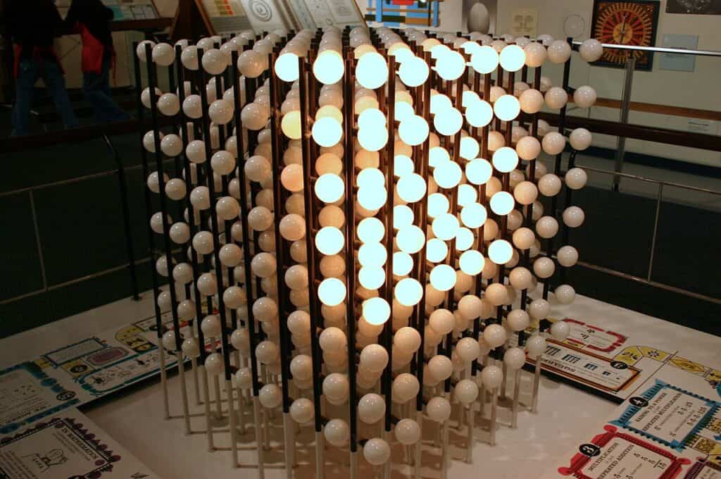 After the fair closed in 1965, most of the pavilions were demolished, but the science hall was preserved and converted into a full-fledged museum in 1969. However, it didn’t last long: funding dried up, and in 1979 the building closed for restoration. It reopened in 1986 as a new kind of interactive science center, where exhibits can be touched.