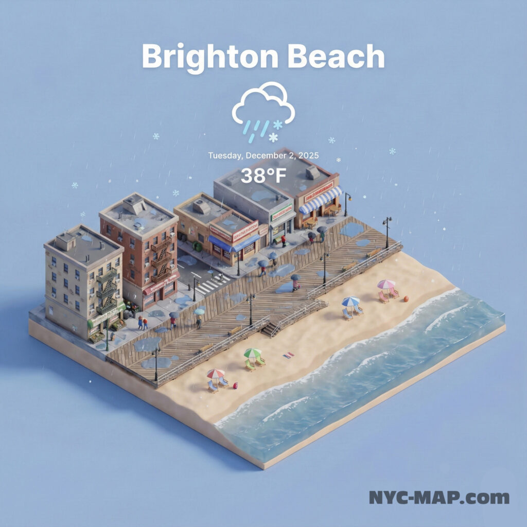 A seaside Brooklyn neighborhood known for its large Russian-speaking community and boardwalk.