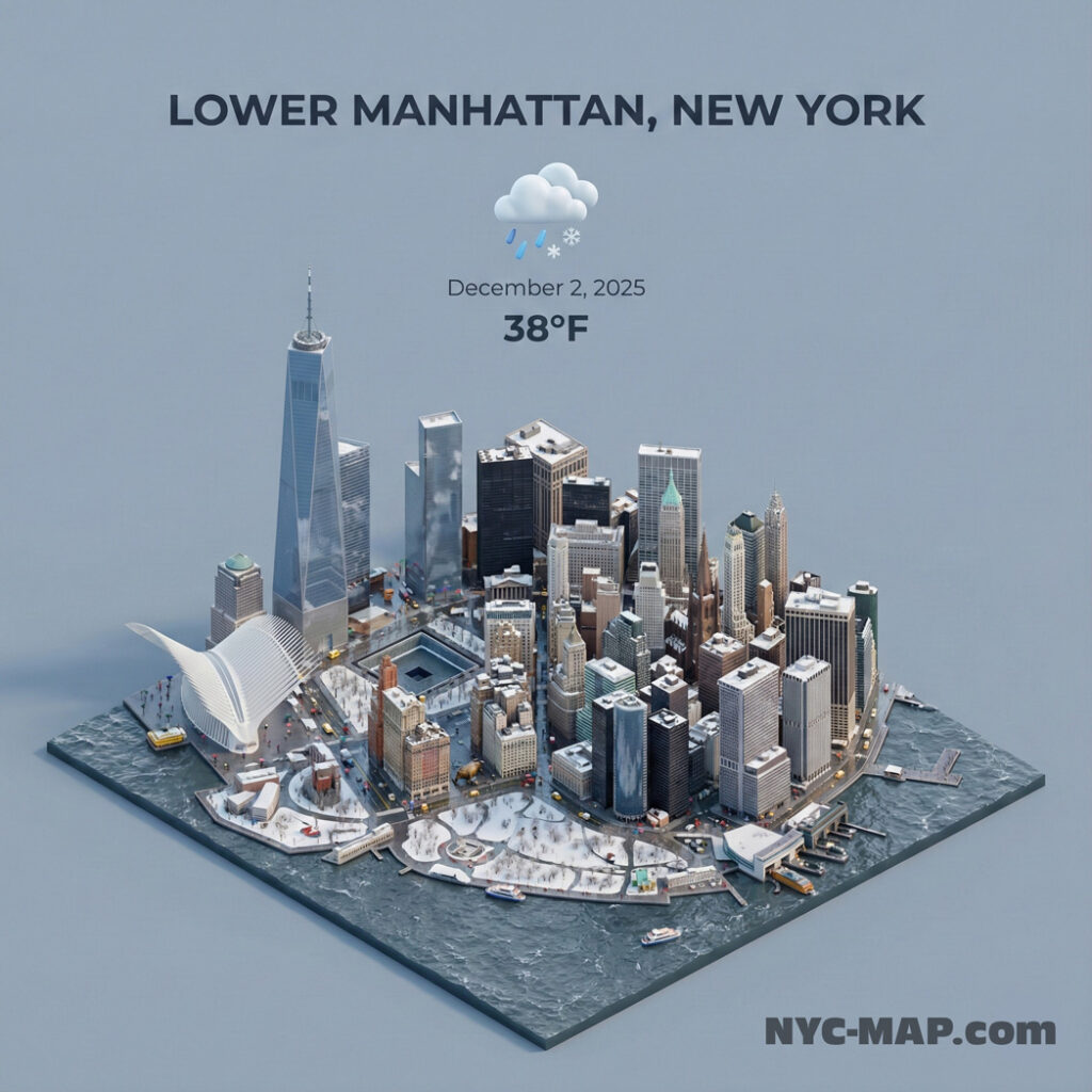 The historic and financial core of New York City, home to Wall Street and major landmarks.