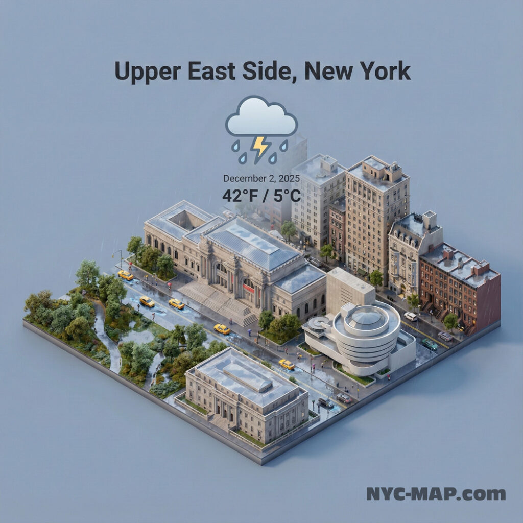 An upscale Manhattan neighborhood known for museums, elegant townhouses, and luxury shopping.