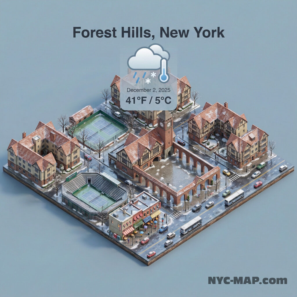 A quiet Queens neighborhood with leafy streets, historic homes, and a suburban atmosphere.