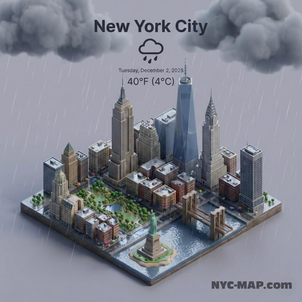 As of today, New York City is crisp and clear, with temperatures hovering around –1 °C (31 °F) — a reminder that winter is starting to settle in.