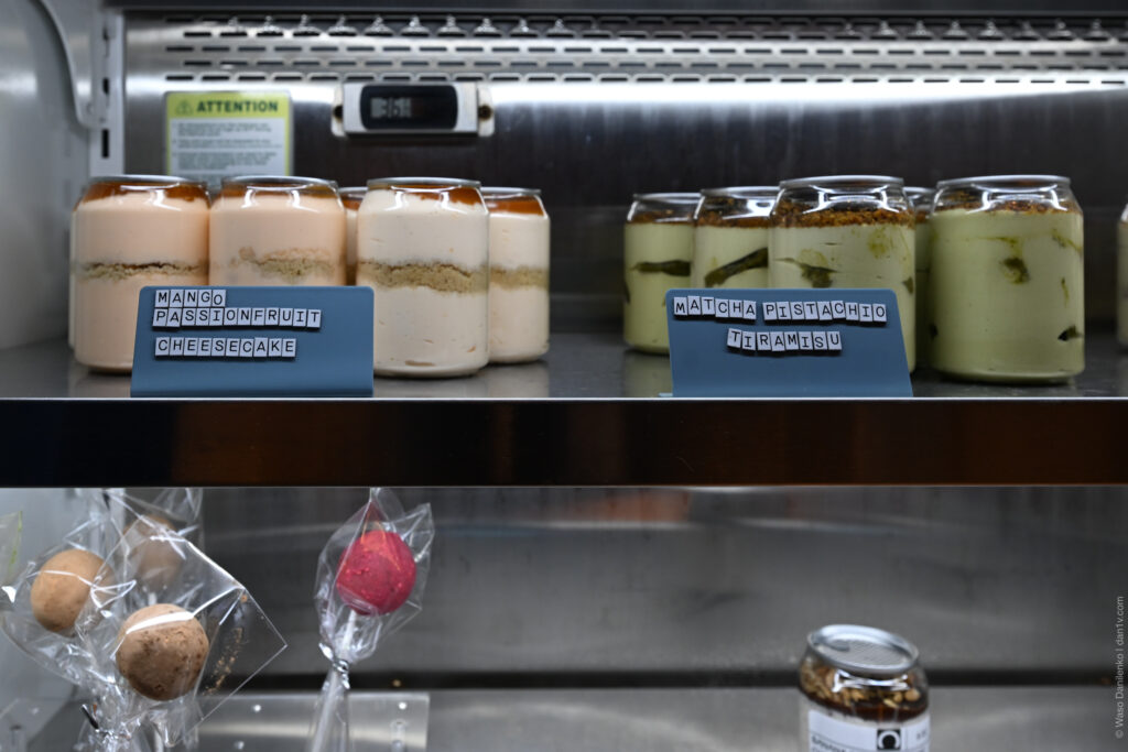 The spot turned out to be small, bright, and welcoming — with a focus on specialty coffee and matcha drinks. But what caught my eye first were the desserts in glass jars — perfectly designed for the grab-and-go format: beautiful, practical, and delicious.