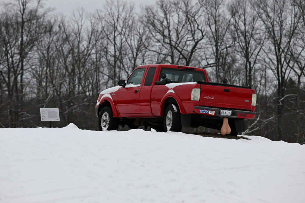 Even the entrance tests your sense of humor and your ability to approach art with irony. Right at the gate stands a large, bright-red pickup truck with impressively oversized testicles.