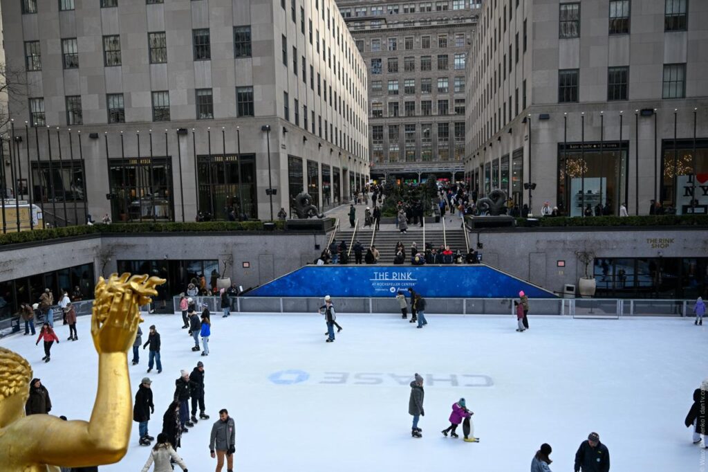 An annual Christmas tradition dating back to 1933 is the magical Christmas tree on the plaza in front of the GE Building. And back in 1936, New York City's first ice skating rink opened in the plaza. Ironically, the rink, which today seems like a symbol of Rockefeller Center, actually appeared quite by accident. Initially, the plaza was intended to be a shopping courtyard with a cafe. But tenants were unavailable, so the administration decided to build an ice skating rink to attract people.