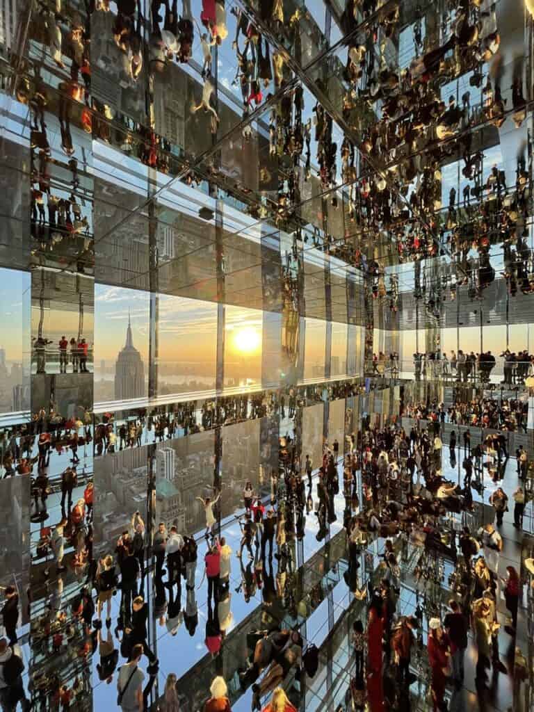 The observatory spans three levels: the 91st, 92nd, and 93rd floors of One Vanderbilt. Each level contains several rooms, including one covered in mirrors where it is easy to feel as if you are inside the film Inception.