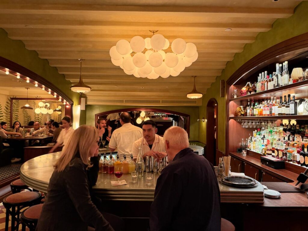 The dining room seats just 45 guests, giving it an intimate, cozy feel — like a stage where every detail plays its part. The design was created by Zeb Stewart, best known for his work on Hotel Delmano in Williamsburg.